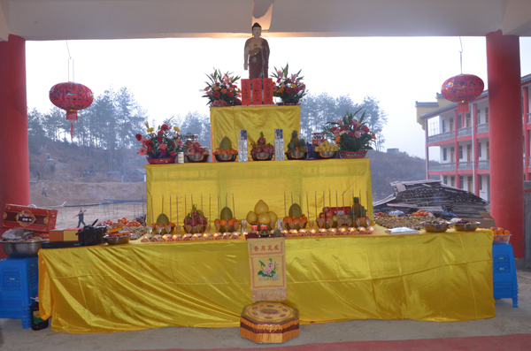 金璧禅寺新春供灯祈福消灾开光法会专题报道 在十方诸佛菩萨的慈悲加被下,在社会各界贤达和善男信女的大力支持下,在妙道山金璧禅寺四众弟子和义工菩萨共同发心护持下,我寺下院念佛堂(即梵净寺)的佛学综合楼及西边寮房的主体建设工程已圆满完工。后期装修工程正在紧锣密鼓的进行中,为了感谢社会各界人士及护法善信对我寺建设和弘法工作的大力护持,特定在壬辰年新春(正月初五至十二日、其中正月初六中午十一点零玖分佛像开光)在金璧禅寺下院念佛堂(即梵净寺)启建新春供灯祈福消灾开光法会。藉此功德祈祷世界和平、国家昌隆、社会和谐,并祈与会大众家庭和睦、诸缘顺应、福慧增长、消灾延寿、六时吉祥。