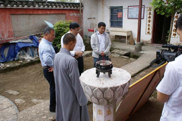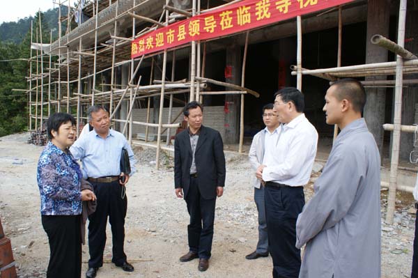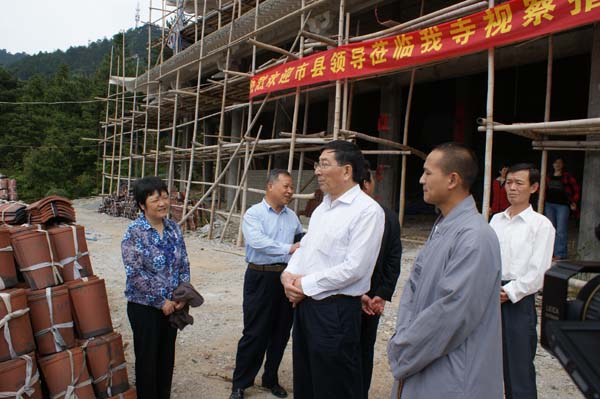 金璧禅寺讯:2012年5月22日上午10时,安庆市人大常务委员会副主任方祖一行,在安庆市宗教事务局黄晓玲局长、岳西县人大副主任彭衍圣、副县长吴小将、县宗教局范蔚新局长等市县领导的陪同下;对金璧禅寺进行调研考察。我寺住持界可法师在外参加会议,委托本寺知客接待详细介绍了金璧禅寺缘起及建设情况并回答了市县领导的提问,汇报了我寺在慈善公益及寺院文化建设,市县领导对金璧禅寺建设发展表示称赞。(编辑部) |